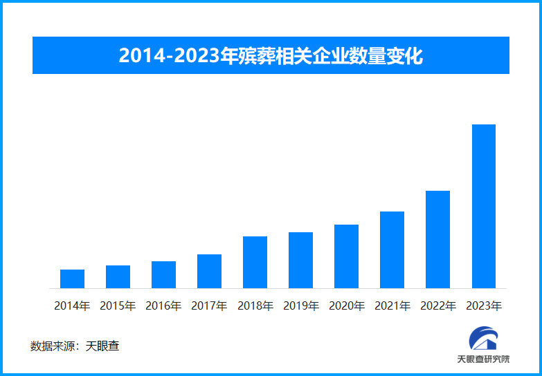 天眼查专业版数据显示,截至目前我国现存在业、存续状态的殡葬相关企业超15.8万家。其中,2024年截至目前新增注册相关企业约3.6万余家,从企业注册数量趋势来看,近十年来,殡葬相关企业的注册数量呈现出逐年增长的态势,并在2023年达到顶峰,为超2.8万家,无疑在2024年这一增长趋势还将持续。