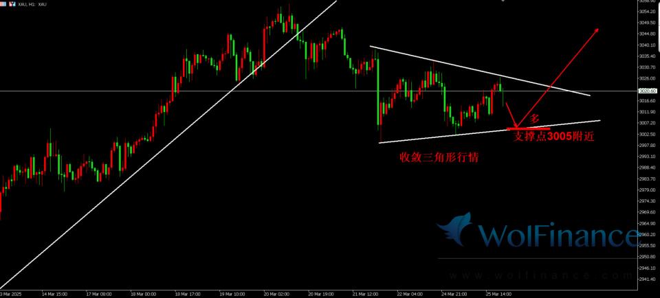 基本面:黄金收敛三角形震荡,下方支撑点做多观点.