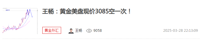 王杨:黄金周五美盘3085空下跌收割,下周回落继续多!