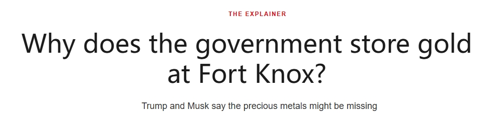 The Louisville Courier Journal提到,特朗普表示他想访问诺克斯堡的美国金银储备中心,“看看黄金是否还在那里”。有未经证实的说法称,特朗普和马斯克对此夸大说法——暗示部分黄金可能丢失。