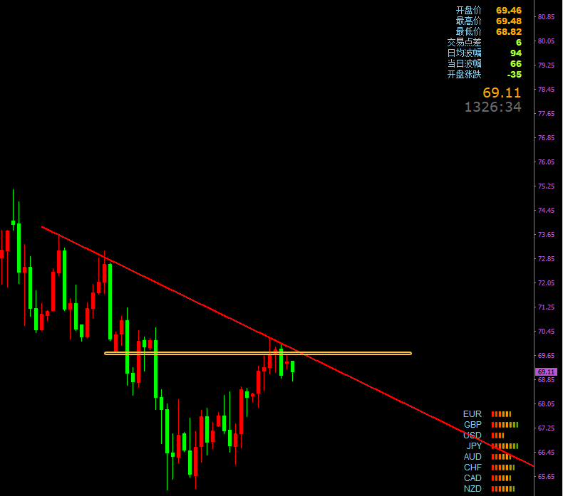 原油反弹69.6附近继续空,防守70.4,目标68/67一线