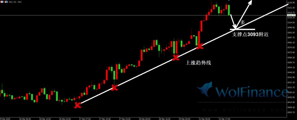 显示多头动能依然强劲。当前价格已连续多周稳定在5周均线之上,表明中期趋势仍然健康。值得注意的是,从低点2536.68美元至今,黄金已累计上涨超过23%,需警惕短期调整风险。从120分钟图分析,近期黄金价格形成了一个清晰的上升通道。若黄金价格能够有效突破3127.76美元阻力位,并站稳3150美元关口,则有望延续上升趋势,下一目标位将指向3200美元心理关口。支撑这一观点的因素包括全球不确定性上升、美联储降息预期增强以及央行持续购金。另外,收盘价需稳定在3170美元以上才能确认长期突破有效性。在这种情况下,价格可能会加速上行,目标指向3300美元(与高盛年底预测一致)。