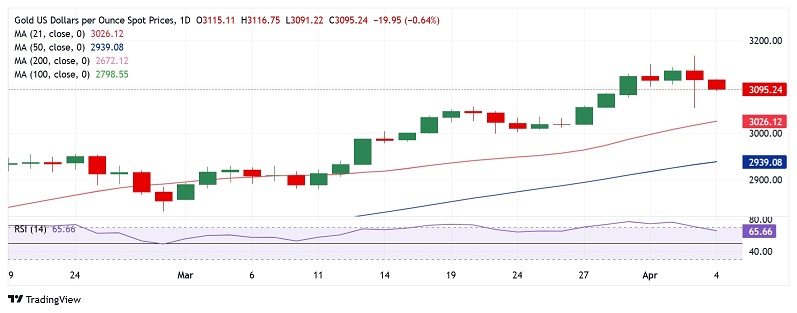 24K99讯 周五(4月4日)亚市盘中,现货黄金短线突然大幅下挫,金价目前跌至3092美元/盎司附近,日内大跌近22美元。FXStreet高级分析师Dhwani Mehta撰文,对金价技术面进行分析。