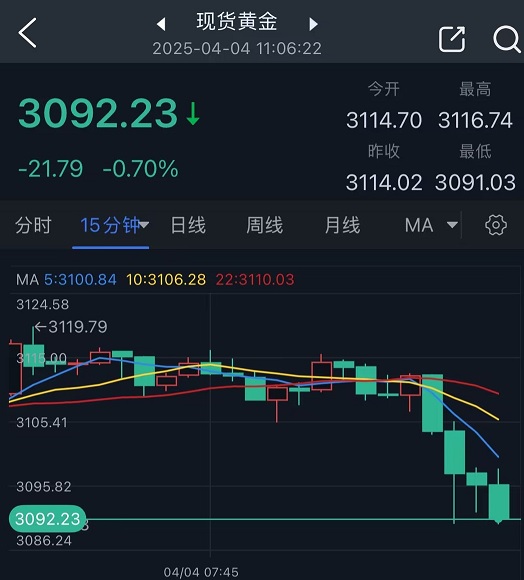 北京时间11:06,现货黄金报3092.23美元/盎司。