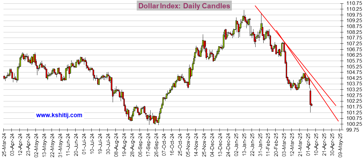 美元指数周四暴跌,投资者正试图弄清楚美国总统特朗普全面征收关税的影响,如何冲击全球贸易与经济增长。追踪美元兑六种主要货币的美元指数(DXY)周四收盘暴跌173点,跌幅1.67%,跌幅为两年多来最大,收报101.95。