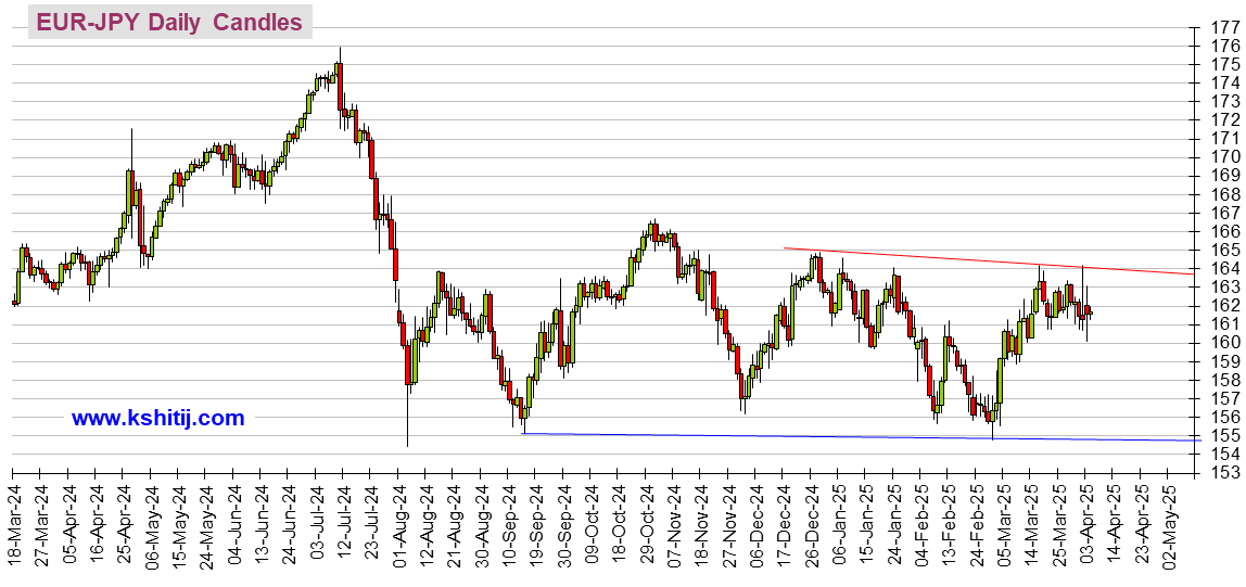 欧元/日元继续在近期的164-160区间内波动。需要朝区间任何一端实现决定性的突破,以进一步明确方向。