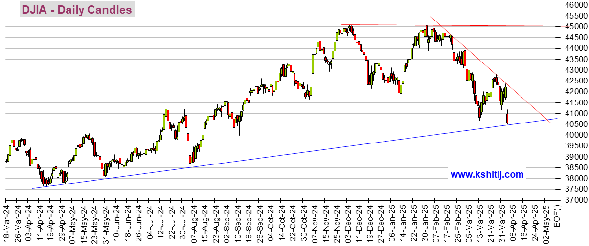 道琼斯指数昨日大幅下挫。该指数正在以比预期快得多的速递跌向40000-39000点。