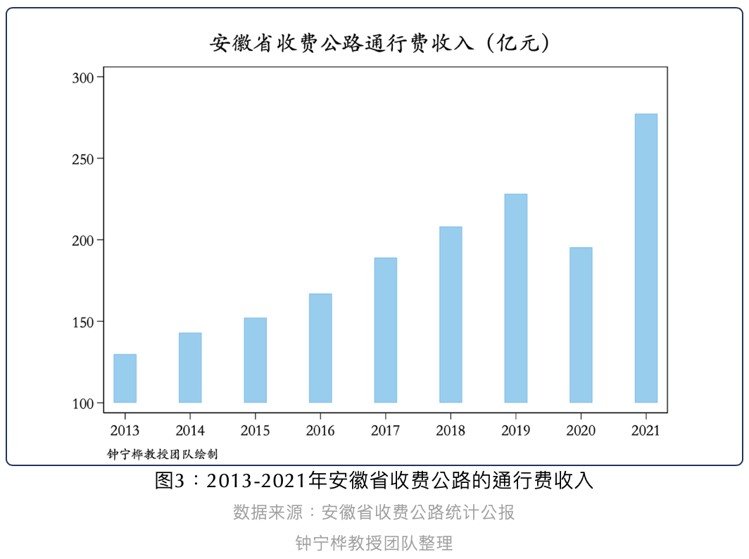 以公路运输为例,安徽省收费公路的通行费收入逐年上升(剔除2020年疫情的影响),显示其偿还该领域债务的能力在提高。
