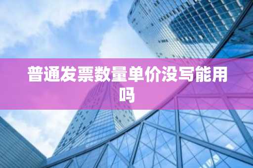 普通发票数量单价没写能用吗 更新时间:2025-04-09 02:59:56 •阅读 0 普通发票数量单价没写不能用。 《国家税务总局令第37号 国家税务总局关于修改的决定》第四条规定“发票的基本内容包括:发票的名称、发票代码和号码、联次及用途、客户名称、开户银行及账号、商品名称或经营项目、计量单位、数量、单价、大小写金额、开票人、开票日期、开票单位(个人)名称(章)等。