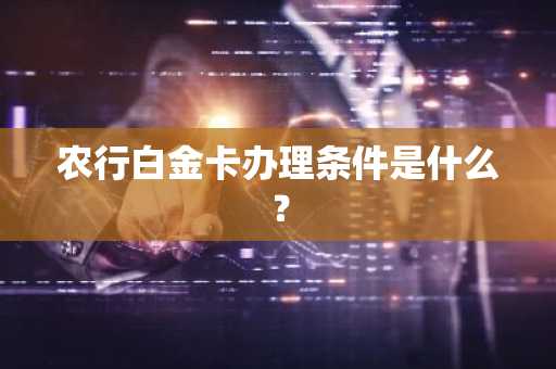 农行白金卡办理条件是什么? 更新时间:2025-04-14 14:00:18 •阅读 0 1、申请人要有完全民事行为能力,有合法收入; 2、申请人在农业银行购买投资性金融产品在100万元以上; 3、年收入50万元以上。 4、党政机关、社会团体、财政拨款事业单位高层领导及财务负责人。 5、大型企业或经济效益较好企业的高层领导和财务部门负责人。
