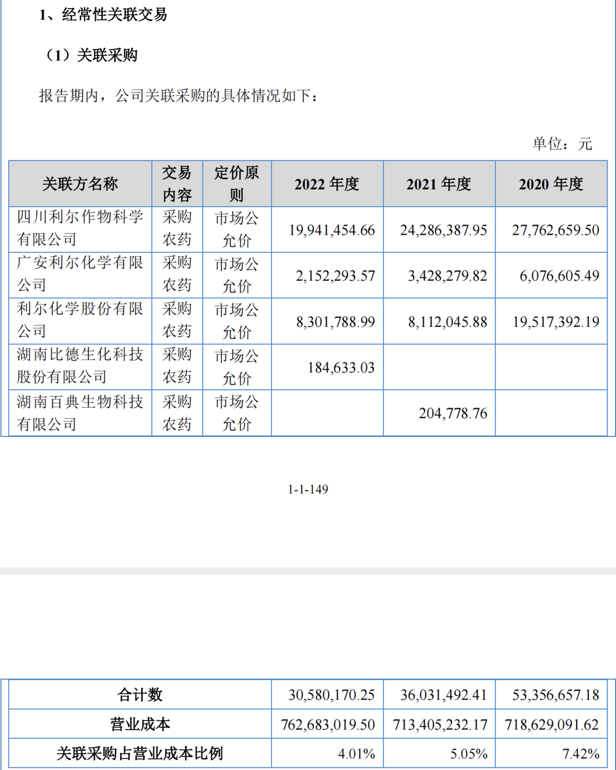 对此快达农化表示,公司生产销售的主要农药及中间体品种与利尔化学及其控制的企业生产销售的主要农药及中间体品种不同,上述关联交易是为了满足公司正常生产经营、业务发展、拓展客户的需要,具有必要性。报告期内,发行人与利尔化学及其控制的企业发生的销售及采购业务定价公允,与其他同类客户/供应商同类产品的交易价格不存在显著差异。