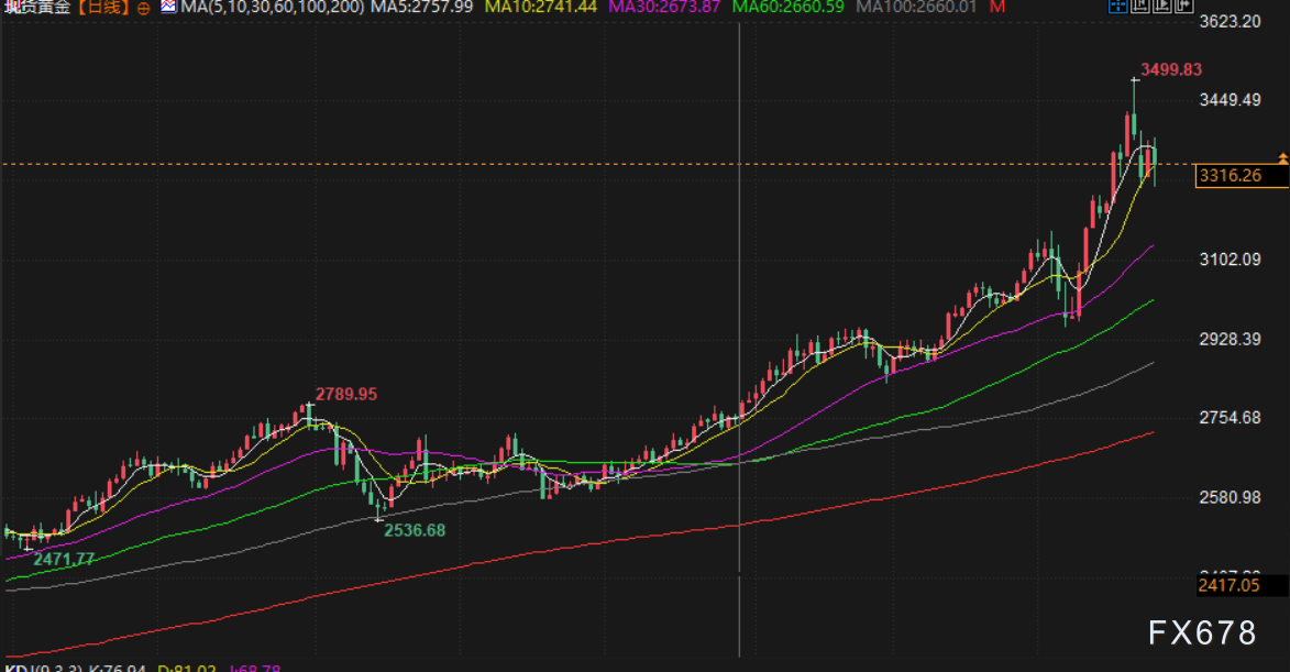 而在特朗普就关税单方面的表态缓和后,加之3500关口,投资者多头了结,金价周内最低一度回落至3260附近,在关税陷入僵局当下,特朗普的任何关于关税的言论,并没有降低市场的风险,反而加大了市场的不确定性,加大了金价的波动,今年迄今黄金已上涨逾25%