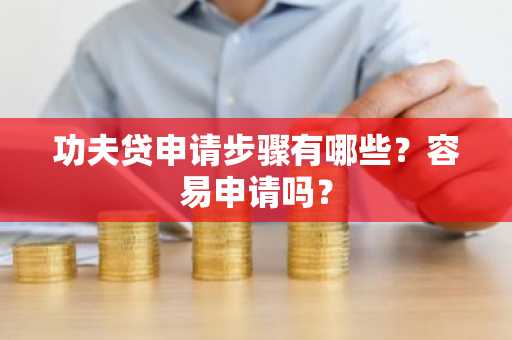 功夫贷申请步骤有哪些?容易申请吗? 更新时间:2025-04-28 14:00:48 •阅读 0 功夫贷申请步骤如下: 1.下载功夫贷手机APP后,注册账号,选择微信登录或快速登录,再设置手势密码; 2.在首页选择贷款产品,有公积金贷和信用卡贷,贷款要求分别是有公积金或信用卡; 3.按照要求填写个人资料,然后点击“下一步”; 4.评估火候获得额度,然后申请提现; 5.系统开始审核,审核通过后会下款。 只要满足贷款条件。再按照流程走就很容易申请到贷款。
