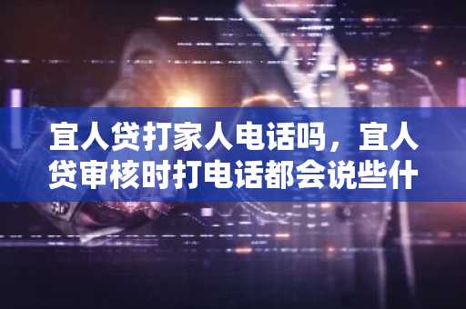 宜人贷打家人电话吗,宜人贷审核时打电话都会说些什么? 更新时间:2025-04-28 15:01:09 •阅读 0 在你的宜人贷进行审核时,它是不会给你的家人打电话进行询问的,只有当你出现了逾期的情况达到一段时间以后宜人贷会联系你的家人,问问你的情况,提醒你要及时还款。 在宜人贷的审核时,只会是问一问你一些问题。确认一下你的基本信息,身份证号是多少,现在的年龄是多少,工作的收入地点职务等信息。还会问问你的贷款用途。