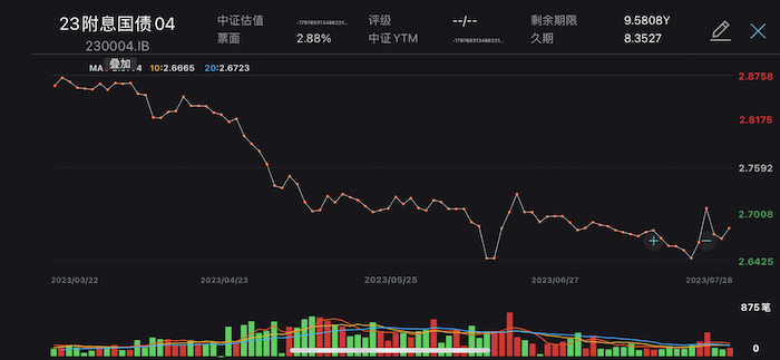 Wind数据显示,7月31日,中国十年期国债活跃券“23付息国债04”收益率攀升至2.683%,相较此前的低点持续回升。不过,接受第一财经采访的理财公司、银行债券交易人士表示,债市短期震荡,预计10年国债仍将在2.64%附近震荡,由于地产和出口数据并未实质性改善,不用过度担忧债市,未来需要关注是否从“预期回暖”向“数据改善”传递。