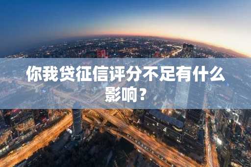 你我贷征信评分不足有什么影响? 更新时间:2025-04-29 14:00:49 •阅读 0 你我贷征信评分不足一般是指申请人在系统上的综合资质不够或条件不符合,还有一种可能是指芝麻信用分太低。如果申请人不是第一次在你我贷上面借款了,出现征信评分不足很有可能是还款记录不良造成的。如果申请人第一次借款就出现了征信评分不足,这种情况有两种原因。一是申请人的芝麻信用分本来就很低,芝麻信用分没有达到要求。二就是申请人的申请资料不全,许多信息有造假的成分。