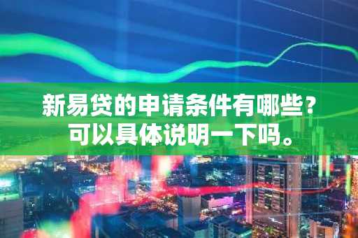 新易贷的申请条件有哪些?可以具体说明一下吗。 更新时间:2025-04-29 14:00:53 •阅读 0 新易贷的申请条件如下: 1. 良好的银行信贷往来记录; 2.在申请地有稳定工作和收入; 3.满20周岁以上60周岁以内的人士; 4.申请人无不良征信记录; 5.在上海市范围内具有现单位连续工作满6个月; 6.申请金额10万及以上的客户需有本人、配偶或未成年子女名下的当地房产。