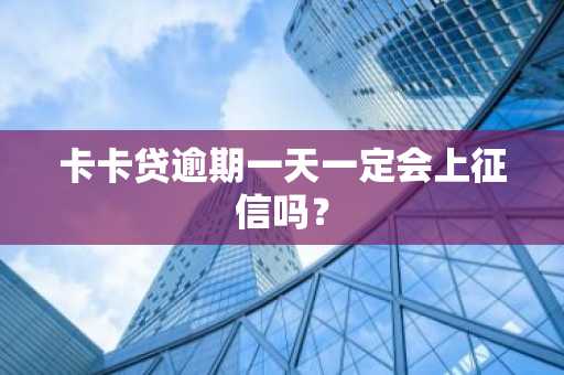 卡卡贷逾期一天一定会上征信吗? 更新时间:2025-05-06 13:00:07 •阅读 0 卡卡贷逾期一天一般是不会上征信的。只要借款人意识到逾期后,马上还清欠款,一般是不会上征信记录的。卡卡贷的自动扣款时间为账单日的凌晨,所以请您提前一天把钱存到对应的借记卡内。例:还款日为6月24日,则账单日为6月25日,那么扣款时间为6月25日的凌晨。