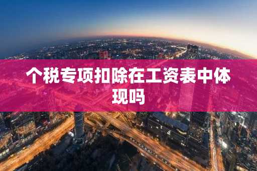 个税专项扣除在工资表中体现吗 更新时间:2025-05-13 18:00:07 •阅读 0 个税专项扣除是指个人所得税法规定的子女教育、继续教育、大病医疗、住房贷款利息、住房租金和赡养老人等六项专项附加扣除。企业在给个人申报个人所得税时,填制的工资表申报表表格中就有专门的表格项目来填写对应的扣除,所以是有在工资表中体现的。