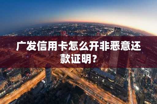 广发信用卡怎么开非恶意还款证明? 更新时间:2025-05-14 12:01:40 •阅读 0 广发信用卡如果你能拿出证明你是并非故意透支的证据,就可以=开具非恶意证明。例如本身单位的出差证明,或者有姓名的旅行票据,外地住宿单,旅行社的证明也可以或者有更换电话的证明都可以,只要是能证明你不是主观故意造成逾期的证明,都是可以的。