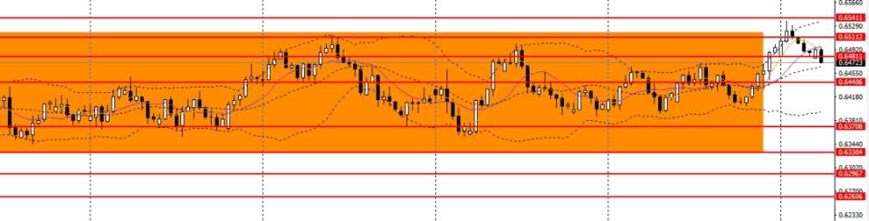 澳美收倒锤阳线,日线RSI小幅回落,4小时未能有效升破0.65关口压力,重回此前震荡区间,多单建议离场,可暂时观望。