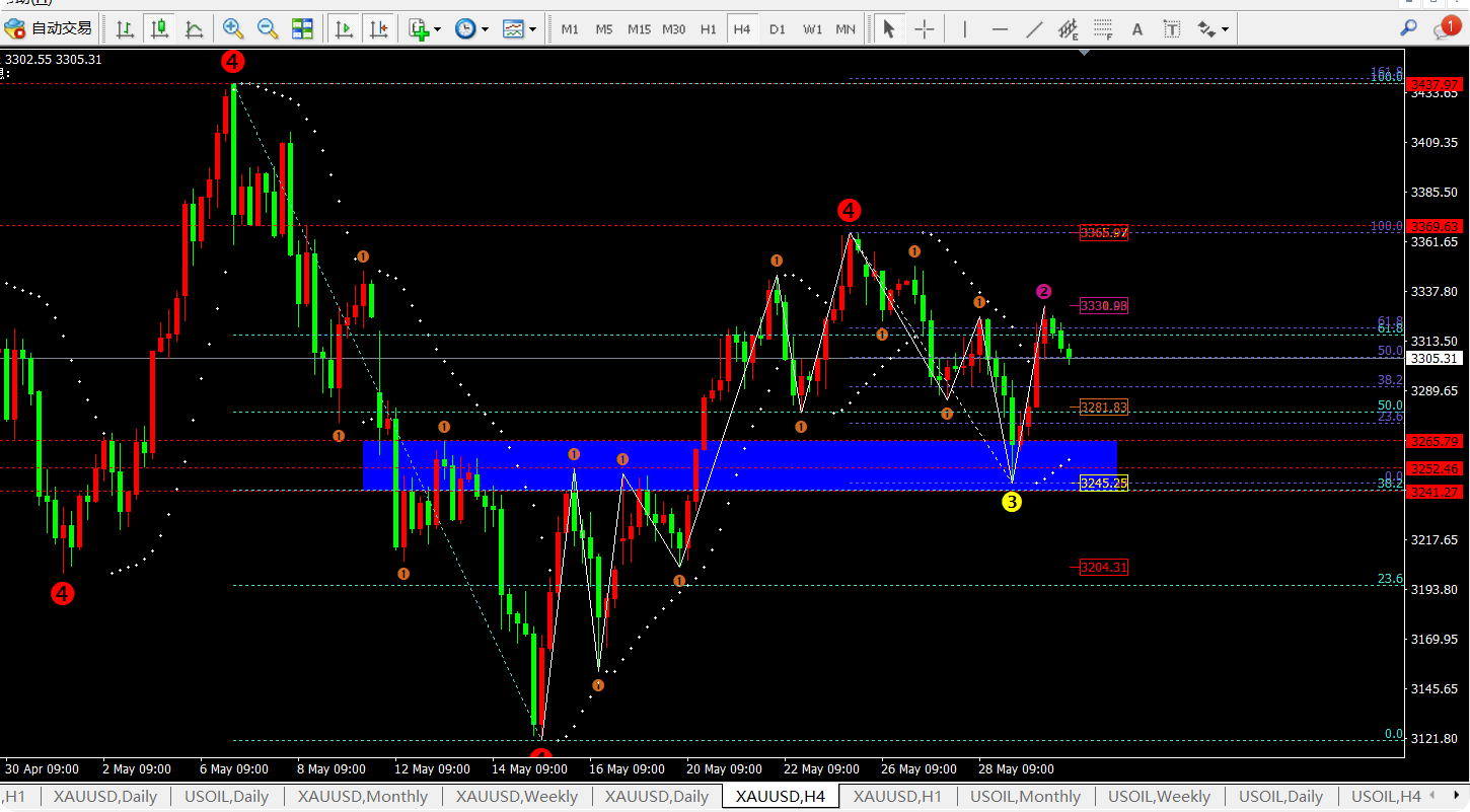 任天成:5.30黄金回踩进行二次确认关注3285支撑