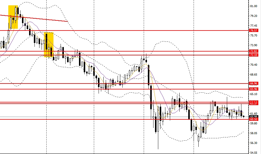 美原油收流星阴线,重新承压于5日、10日均线,日线RSI位于50之下,4小时未能升破63一线压力,短线趋势转空,下方首先关注60附近支撑,如再度企稳,空单可减仓。