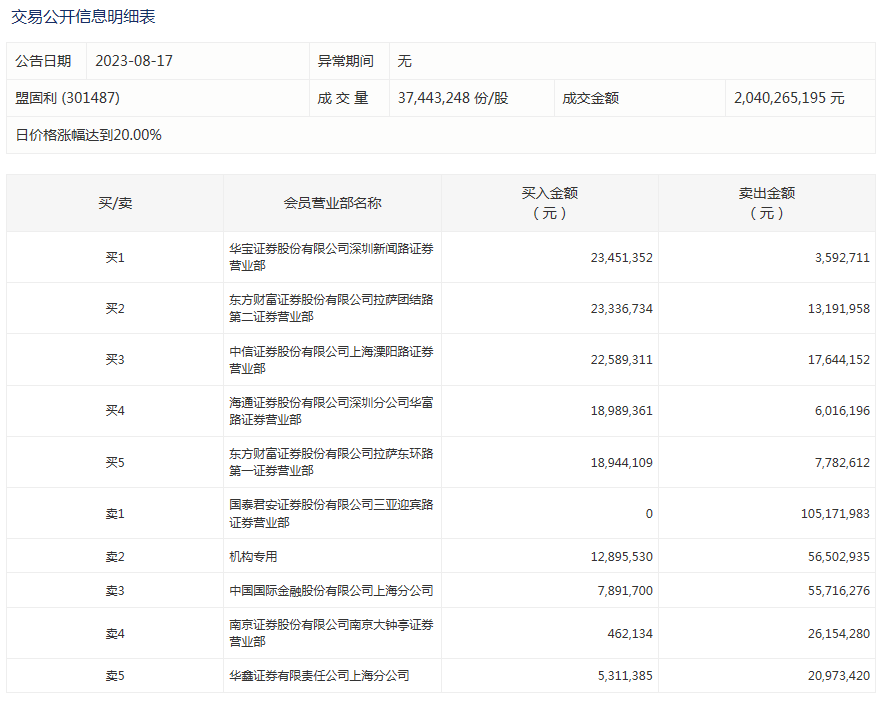 盟固利今日再次涨停 一机构专用席位净卖出超4000万元