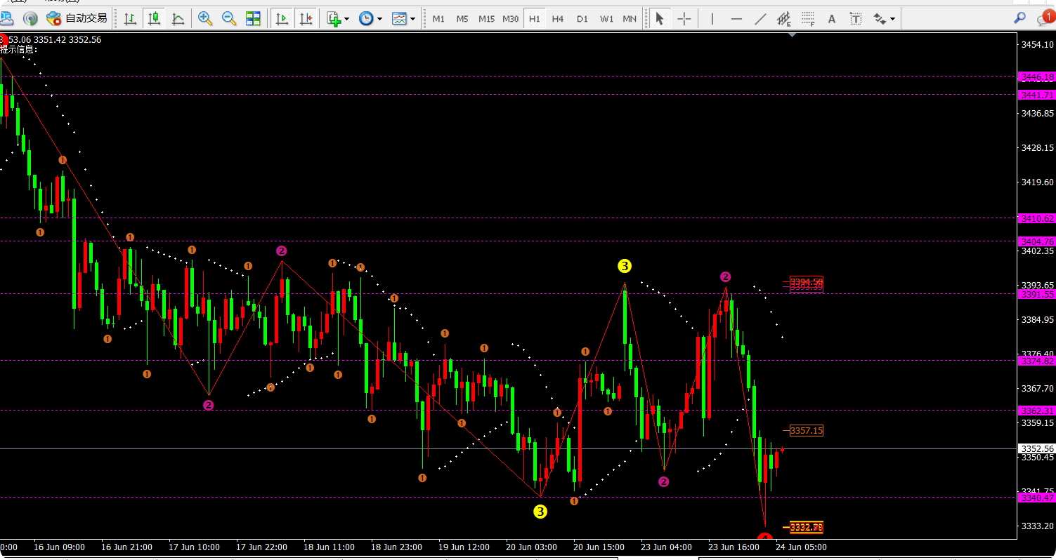 昨日黄金行情如预判的那样维持震荡冲高,但是凌晨由于“以伊”停止开火,价格从3393再次回落3367一线,早间延续下跌破位3340到达3333一线。