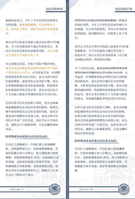 美联储9月与7月声明对比。