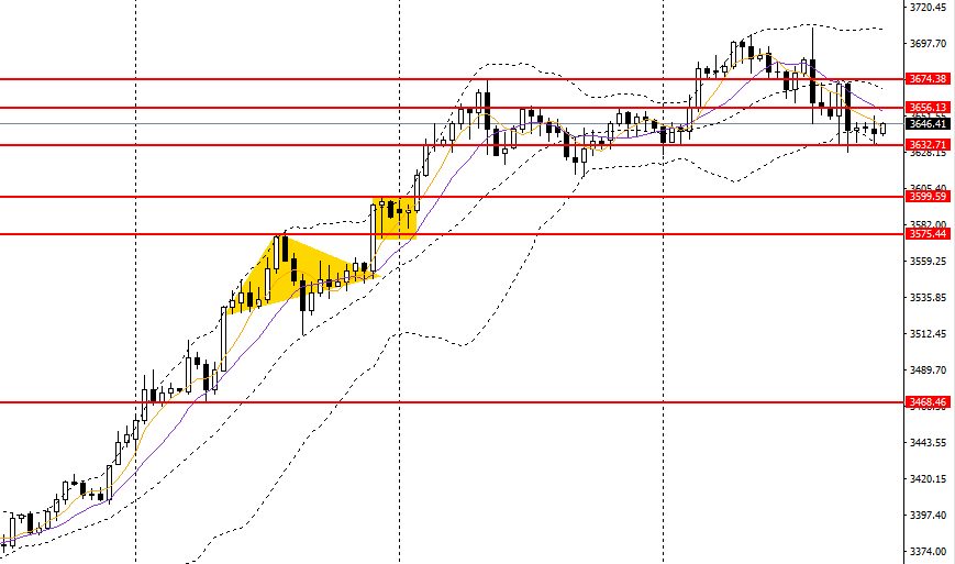 黄金继续下挫,跌破10日均线,日线RSI进一步回落,4小时呈复杂双顶,回踩3630一线支撑,但日内宽幅震荡的概率较高,建议等待反抽至3650附近承压进空,如跌破3630,可看空至3600-3610。黄金/人民币如于834附近承压可进空,后市有望继续回踩827。