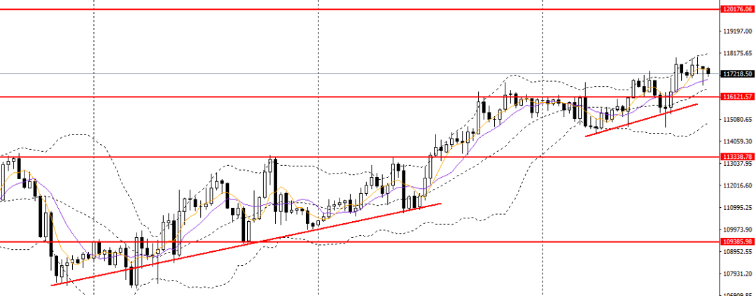 比特币昨日收涨,站上5日均线,4小时守住116000一线支撑,如继续维稳于上方,后市预计仍将挑战118000-120000。