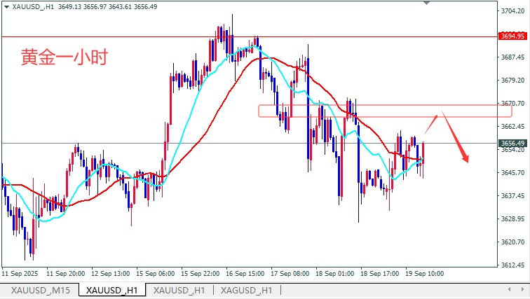 王导:黄金一个字 空! 更新时间:2025-09-20 00:16:10 •阅读 0 黄金美盘继续空 ! 黄金,整体走势进入震荡格局,日内反弹止步3670美元强压之下,多空来回拉扯,行情虽然有点焦灼,但思路不变! 回到盘面,目前黄金在周四反弹上涨受阻于3670-3675位置之后,再次出现下行,前期多次反弹此位置均未能有效突破,小级别形成双顶形态!早盘博文我已明确提示,黄金转弱反弹高空参与即可!