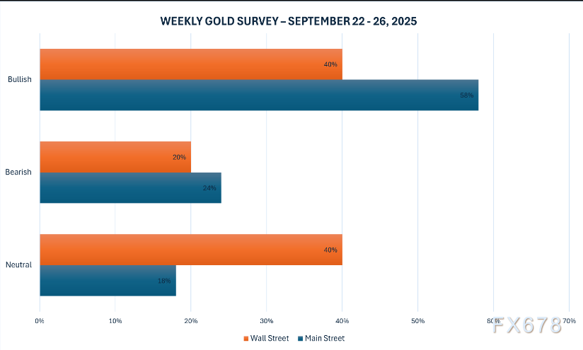 Kitco News的最新周度黄金调查捕捉了市场情绪的微妙转变。在美联储降息后,华尔街分析师回归中性偏见,40%预期未来一周金价上涨,20%看跌,40%认为横盘。散户投资者也冷却热情,58%看好上涨,24%预测下跌,18%预期盘整。这比此前狂热看涨有所回落,许多专家如Colin Cieszynski认为,金价大涨后需休整,尤其在季度末新闻流放缓之际。Philippe Gijsels预计金价短期在3600美元附近徘徊,但长期支撑强劲,因为下次降息指日可待。