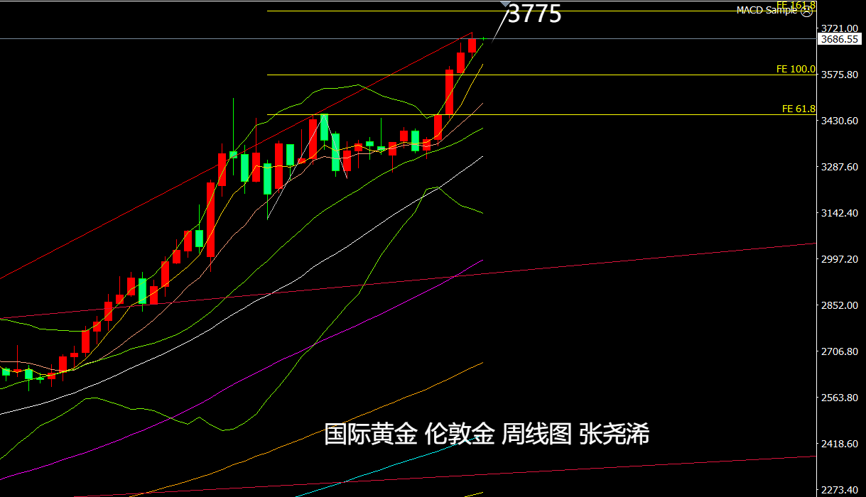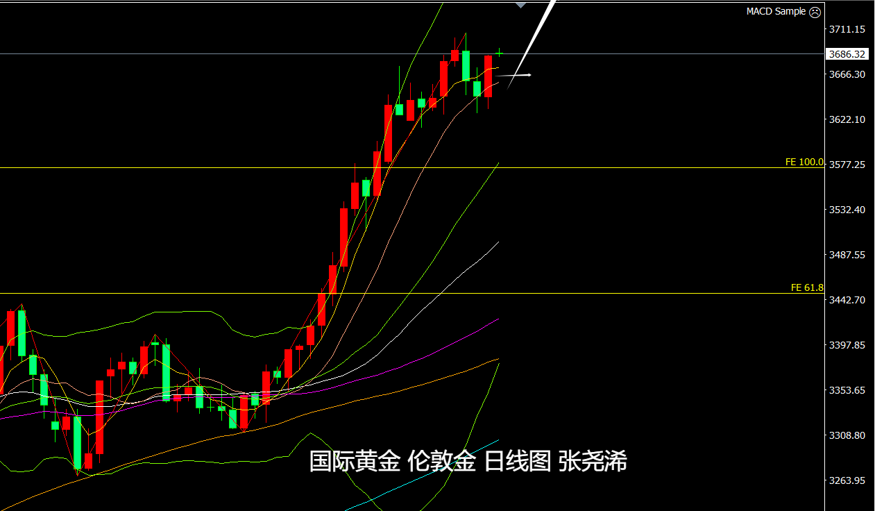 黄金市场上周:国际黄金继续刷新历史高点,并连续第5周收阳,从收线形态来看,多头最终重获优势,未能形成短期见顶回调形态,基本面上,利空压力几乎耗尽,多头前景仍保持良好,那么短期后市将有望继续走强冲击3775美元或更高位置。下方将继续依托布林带上轨支持看涨上行。