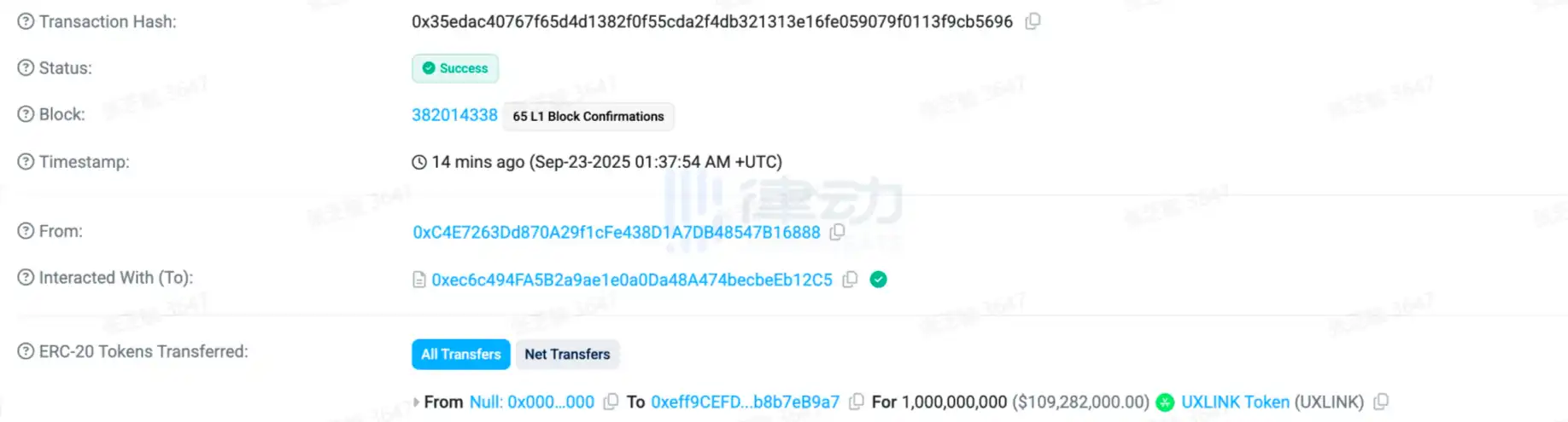 据市场消息,黑客链上增发 10 亿枚 UXLINK。