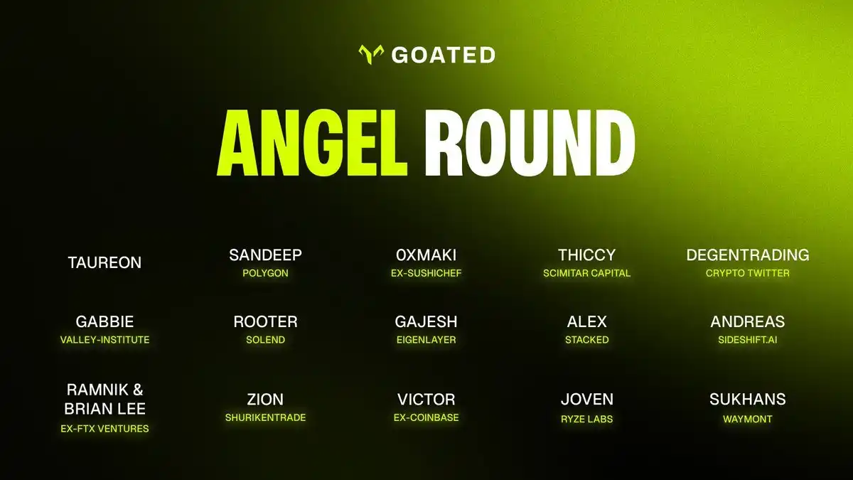 Goated 是 Solana 生态中发展迅速的去中心化游戏平台。自 2024 年 6 月上线以来,Goated 已经处理了累计超过 10 亿美元的投注额,拥有 1.2 万 月活用户,并创造了 200 多万美元的净游戏收益。此前的天使轮获得了 Polygon 和 Sentient 创始人 SanDeep、Scimitar capital 创始人 Thiccy 以及一些前 FTX 团队成员的支持。