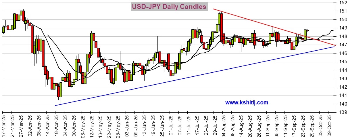 美元/日元一度跌至147.51的低点,随后开始回升。不过,要想让150-152进入视野,还需要突破149;否则,汇价可能继续保持在149-146区间。