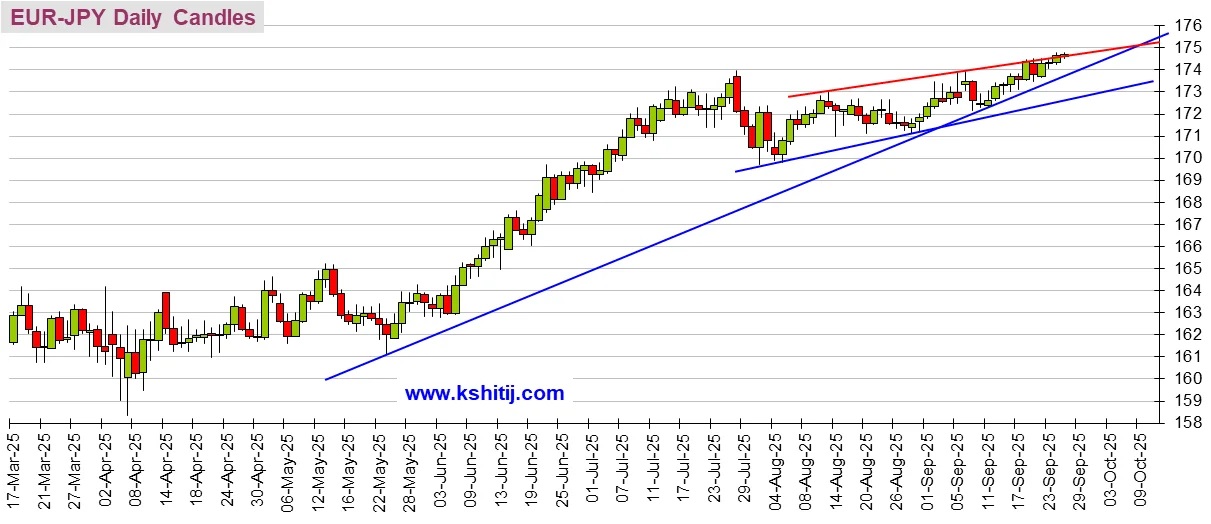 如果突破175.00,欧元/日元在未来几周内可能会向176-178迈进。总体而言,目前的下行幅度可能被限制在172。