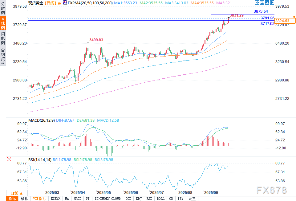 黄金价格指向3879.64,降息预期与美国政府停摆担忧助推金价