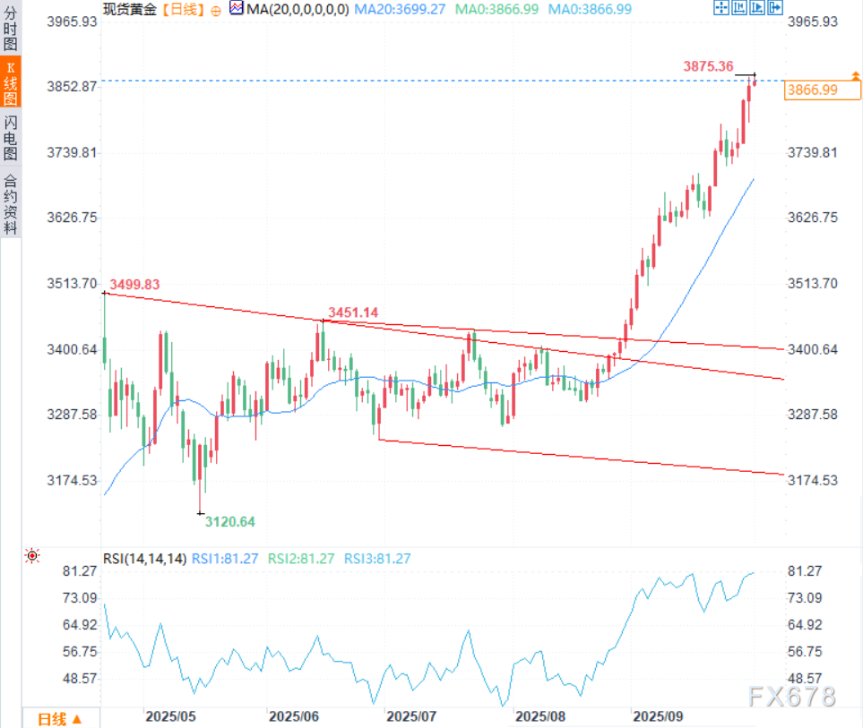 技术展望:金价蓄势挑战3900美元关口