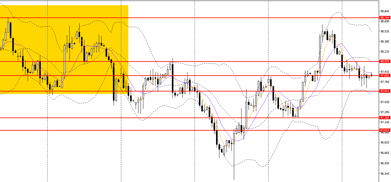 美元指数继续微幅阴跌,回踩10日均线,4小时一度逼近关键支撑97.60,短线仍处于震荡格局,可暂时观望。