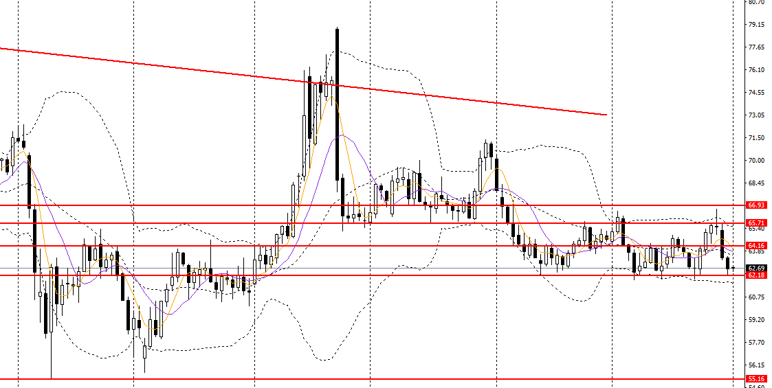 美原油延续回落,承压于日线布林中轨,日线RSI位于50之下,4小时回踩62附近支撑,空单仍可持有,如进一步下破,可看空至60。