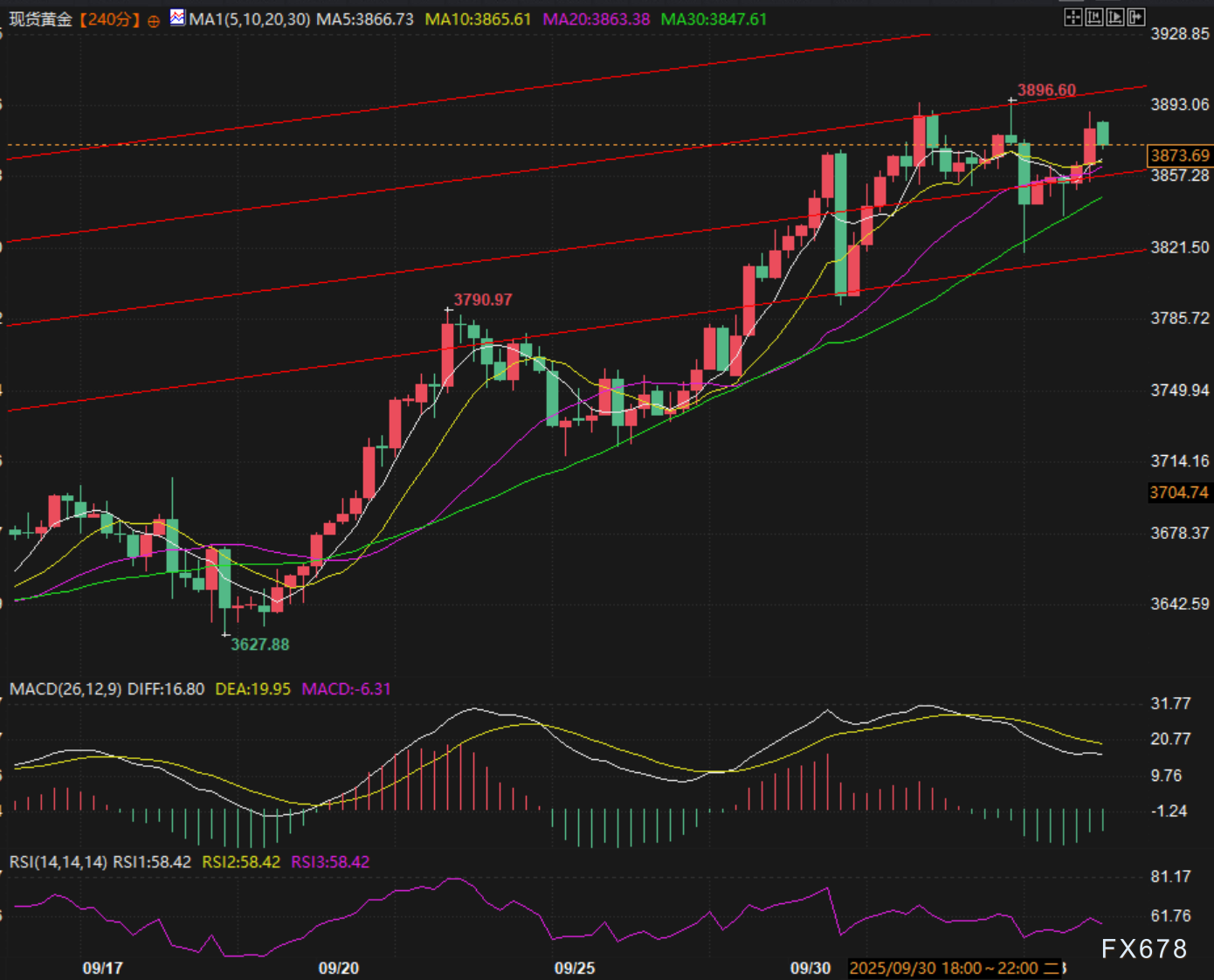 汇通财经APP讯——周五(10月3日)亚欧交易时段,现货黄金走出探底回升走势,较周四录得的3900美元附近历史高点仅有20美金不到的距离。当前贵金属整体维持强势格局,核心驱动源于两重因素:一是地缘政治问题持续发酵,包括美国政府部分停摆以及美国的军事动作,二是就业市场疲软态势显现,这两大变量共同推升了市场对美联储在年内剩余两次政策会议中进一步降息的预期。