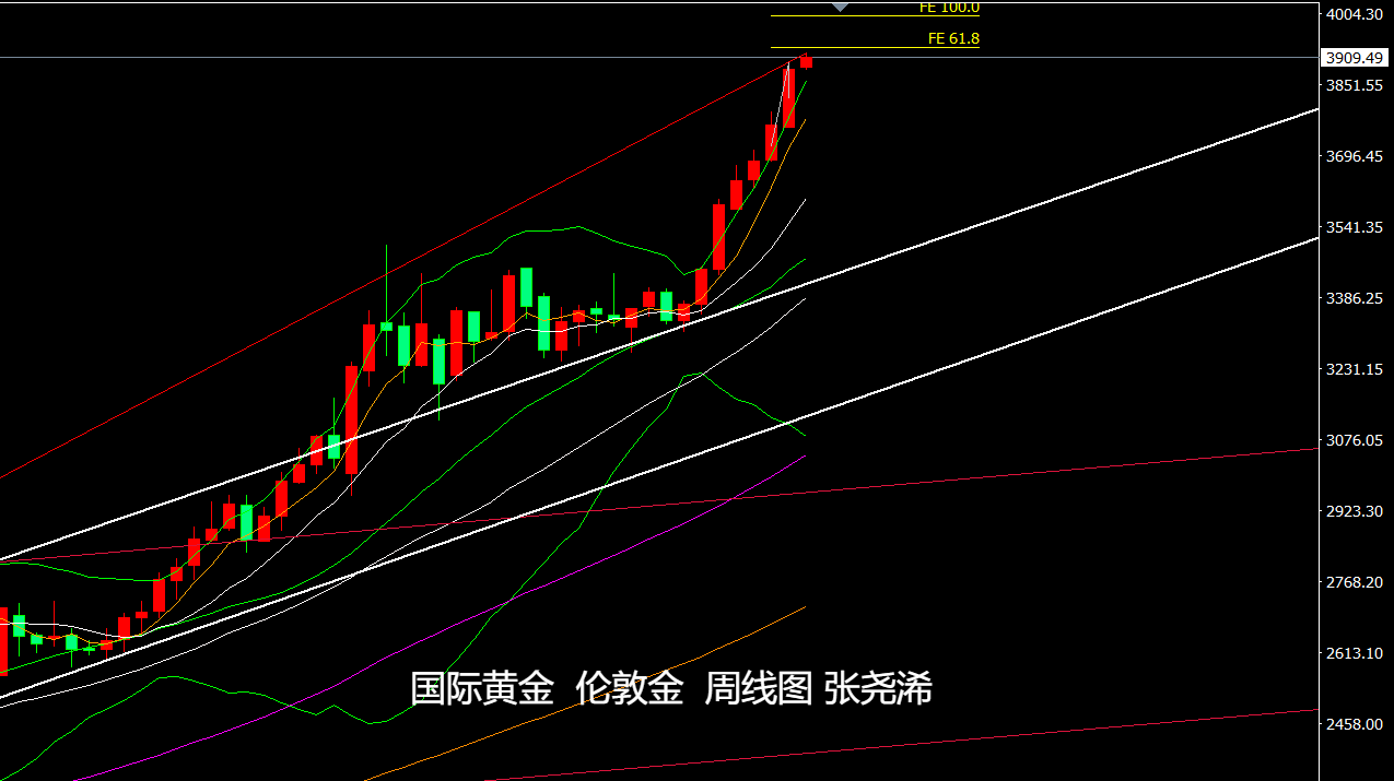 黄金市场上周:国际黄金继续走强收涨,连续第7周收阳,相对于前几周,多头动力有所加强,并冲出布林带之外,有一定的回调需求,但由于多头动力持稳,回撤预计也是做多机会,上方将继续等待触及3975-4000美元区域目标。