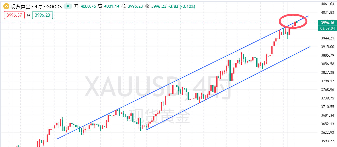 后半夜我们提到如果黄金日线收线不能低于3960,那必有新高。一大早3991空单直接保本止损,行情直接冲击4000关口!!!