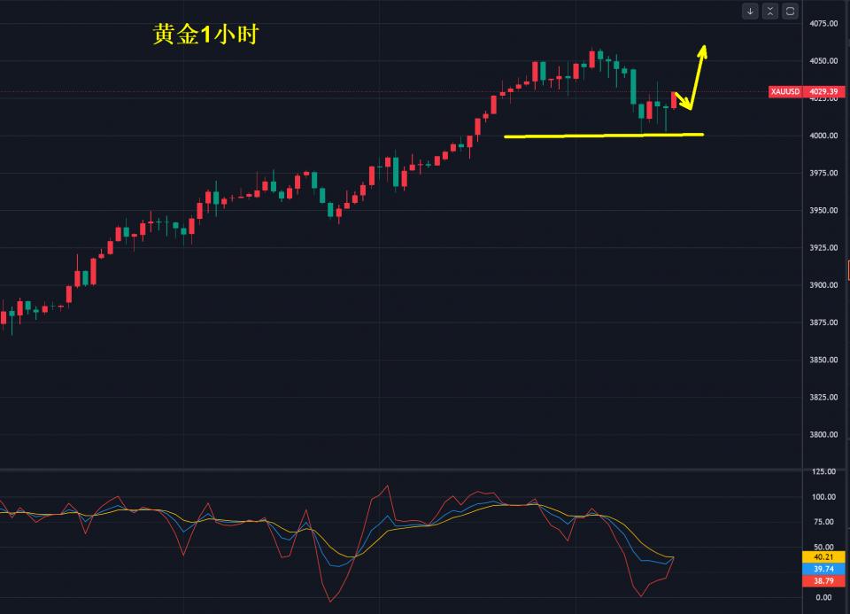 1小时,高点为4058美元向下调整也不过50多美金,对于这一次的上涨而言并无影响,今天要想空黄金就得等二次失守4000美元,否则继续看涨不变,看多但要防回调,记住,是防回调,不是博回调。