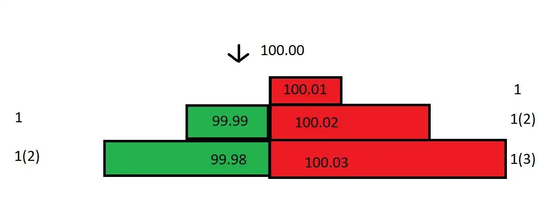 尽管你的买一 (100) 和卖一 (100.01) 的 spread 只有 0.01,但是实际利润高达 0.03!