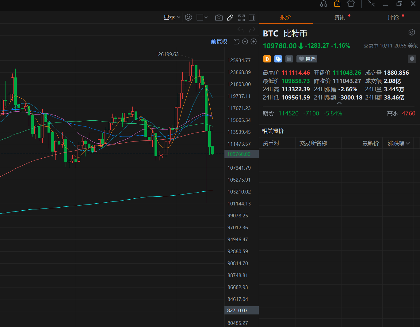 美股高位暴跌,其中纳指和标普创4月来最大单日跌幅;中华a50暴跌,纳斯达克中国金龙指数暴跌,欧洲股市暴跌,尤其是科技馆一地鸡毛;数字货币普遍大跌,大饼一度下跌近17%。特朗普是全球一切风险资产的灾星,是黄金牛市最大的功臣。