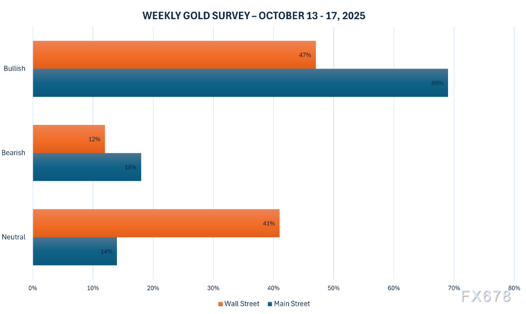 与此同时,Kitco的在线投票中投出了295票,主街散户投资者的看涨情绪开始赶上专业人士。202名零散户交易者,即69%,预计 未来一周黄金价格将上涨,另有52名,即18%,预测黄金将失去阵地。剩下的41名散户投资者,占总数的14%,预计价格将在未来一周内盘整。